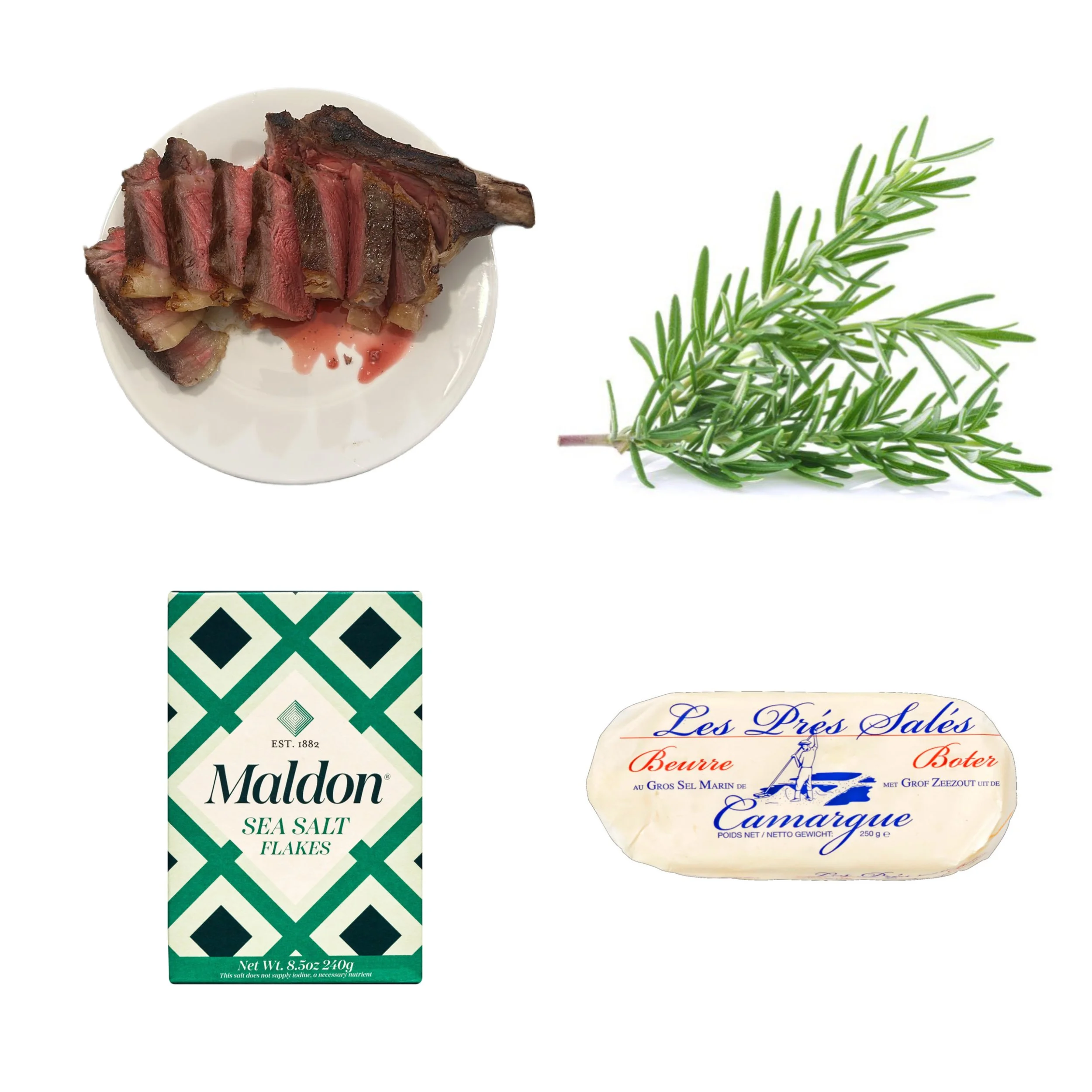 Add a generous amount of butter and rosemary to the pan, lower the heat to medium.